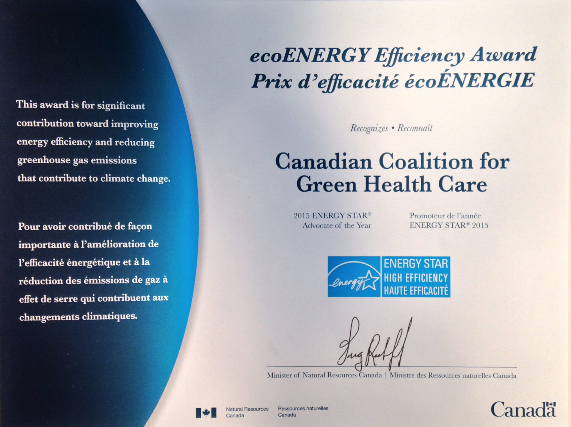 - Including ENERGY STAR recommendations in all building energy assessments conducted for Canadian health care facilities by the Coalition’s HealthCare Energy Leaders Canada (HELC), Healthcare Energy Leaders Ontario (HELO) and HELO North team.
